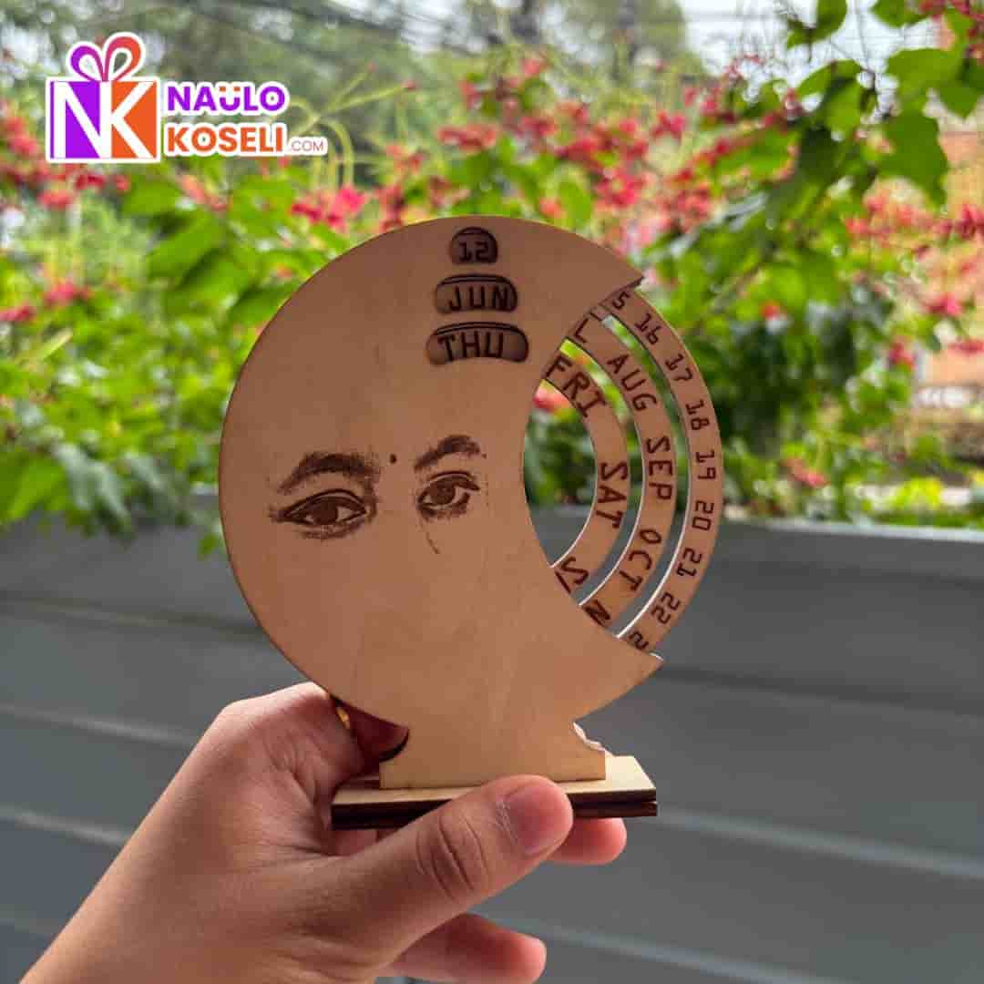 Mini wooden calendar with engraved months and dates. Reusable, eco-friendly, and perfect for desks, gifts, or home decor.
