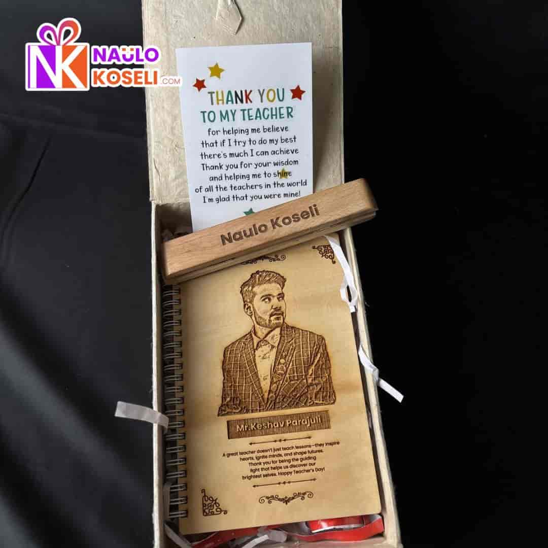 Special Teacher’s Day gift package with engraved wooden items. A perfect way to thank and appreciate your teacher’s efforts.