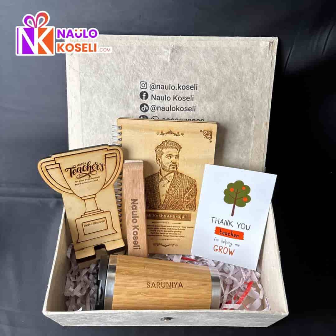 Premium Teacher’s Day gift combo with engraved wooden items. Elegant and thoughtful choice to make your teacher feel special.